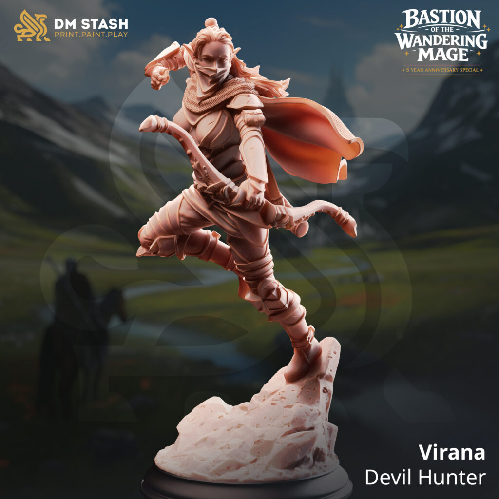 Virana to elitarna łowczyni mroku, której życie upływa na tropieniu i eliminowaniu istot z najgłębszych otchłani. Z niezwykłą zwinnością przeskakuje nad skalistymi rozpadlinami, napinając cięciwę swojego łuku w locie, by posłać zabójczą strzałę prosto w serce demona. Jej determinacja jest równie niezłomna jak stal jej pancerza, a każdy jej ruch to perfekcyjna symfonia precyzji i siły, wypracowana podczas niezliczonych nocy spędzonych na polowaniu w najbardziej niebezpiecznych zakątkach świata.